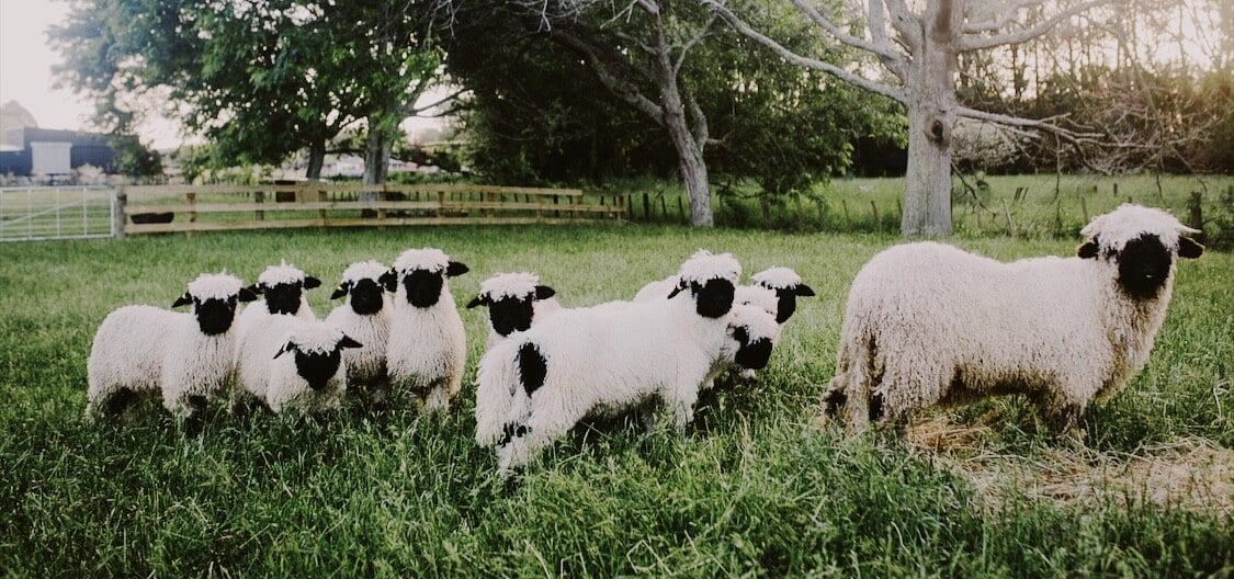 The adorable and friendly Valais Blacknose originate from the Valais region of Switzerland and is a dual-purpose breed raised for meat and wool. They are a hardy mountain breed, grazing the steepest stoniest slope of the Alps. First mentions of the race can be traced back to the 15th century, however, it's possible the current Blacknose sheep are descendants of a breed introduced to Valais in pre-Roman times. They produce coarse carpet grade wool with fibres having an average micron of 38 in mature sheep and 28-30 for lambs. The wool is great for felting and has a long staple growing around 30cm annually. Leigh-Anne and Andrew Peake are among the handful of pioneers who successfully brought Valais Blacknose embryos to New Zealand.